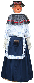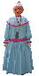 2- MEEKE (33kg-285cm):gekleed in het rood en geel met een blauwe voorschoot, naar het voorbeeld van het laatste kostuum van de reus Mieke van de Stad Brussel.