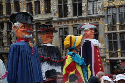 5- ROOSKE (25kg-222cm):Gekleed in het rood, gecreërd in de jaren 50. Zij representeert het bevrijde Brussel van na de 2de wereldoorlog.
